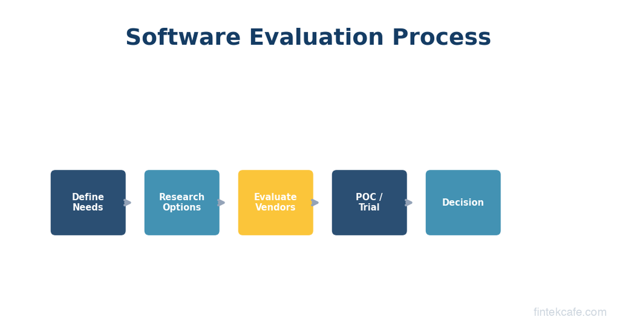 Consider hiring a consultant when: the purchase exceeds $500K annually, your team has no experience with this category of software, the evaluation involves complex integrations with existing systems, or the decision has company-wide impact (ERP, core banking, CRM). A good consultant brings experience from dozens of similar evaluations, knows the vendors' negotiation playbooks, and can identify risks your team wouldn't. Budget 5-10% of the first-year contract value for consulting support. For smaller purchases or categories where your team has direct experience, an internal evaluation using the framework in this guide is sufficient.