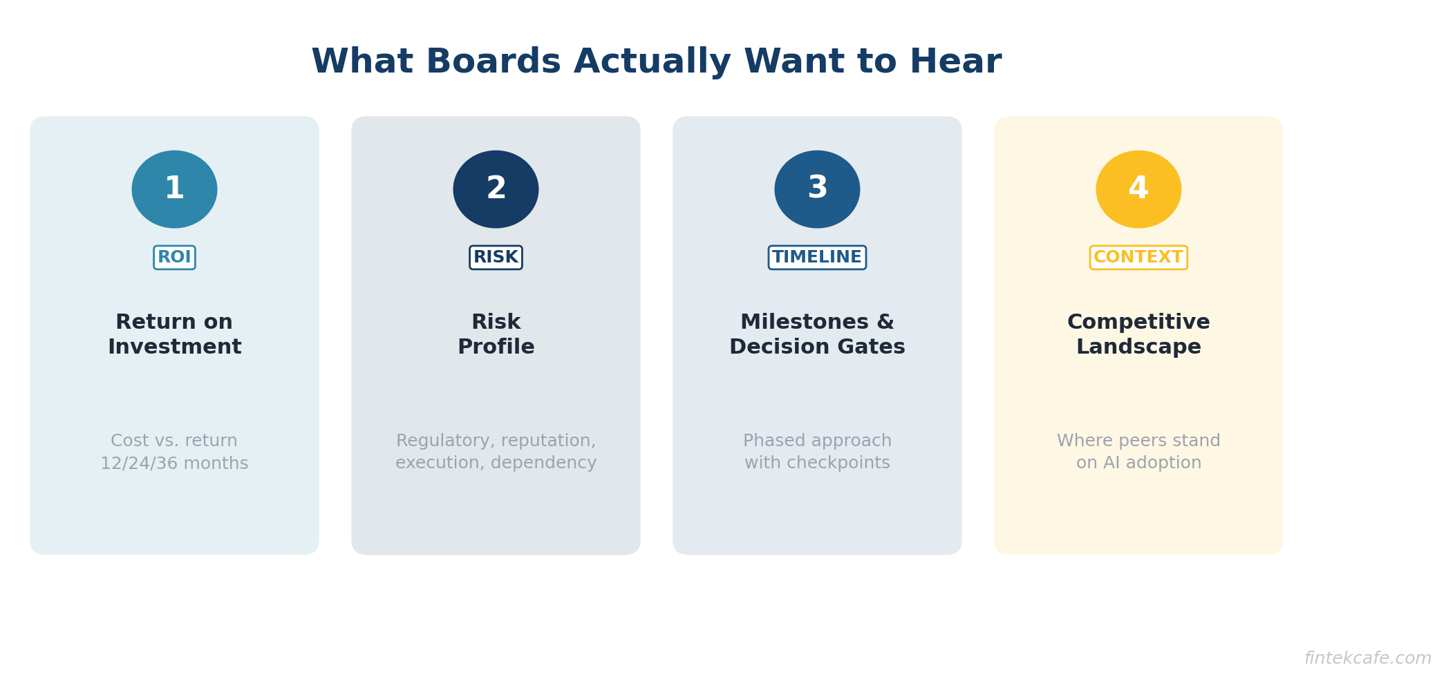Board members are not engineers. Many are not even technologists. They are fiduciaries responsible for shareholder value, risk oversight, and long-term strategy. When you walk in talking about fine-tuning models and inference costs, you have already lost the room.
